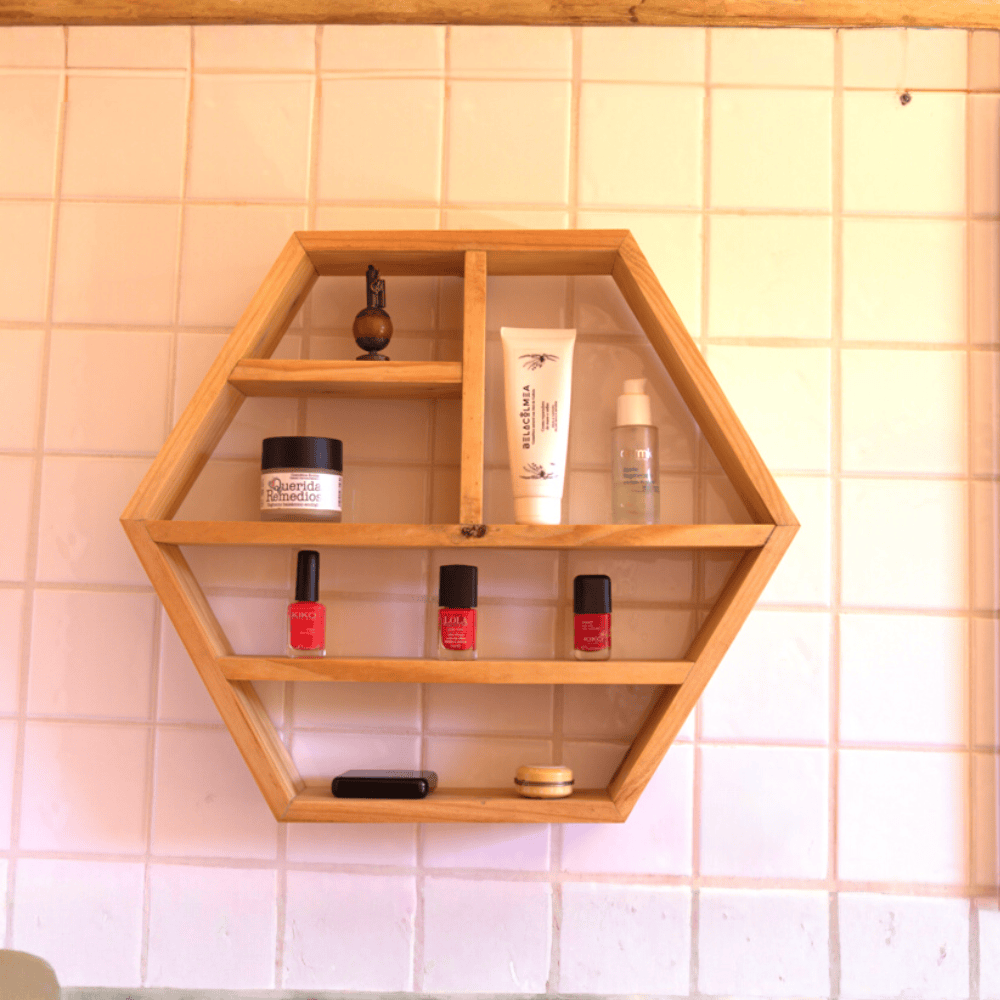 Su forma hexagonal crea equilibrio visual y su madera natural aporta calma.