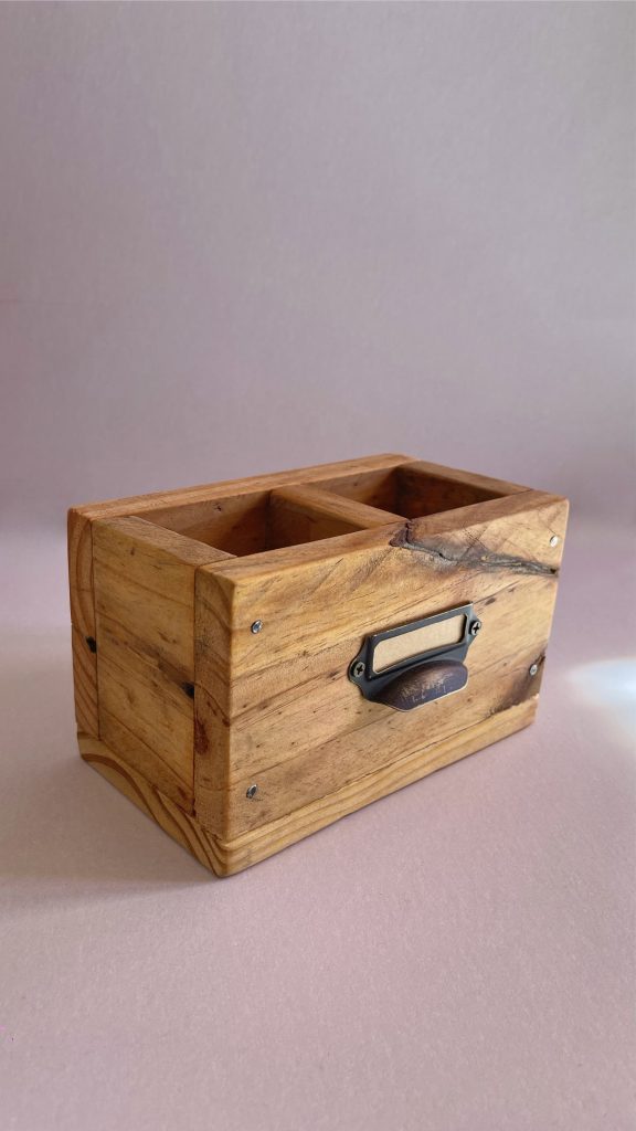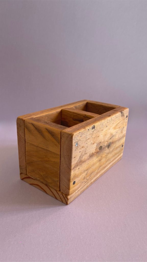 Portalápices madera recuperada. 17 x 10 x 10 cm.