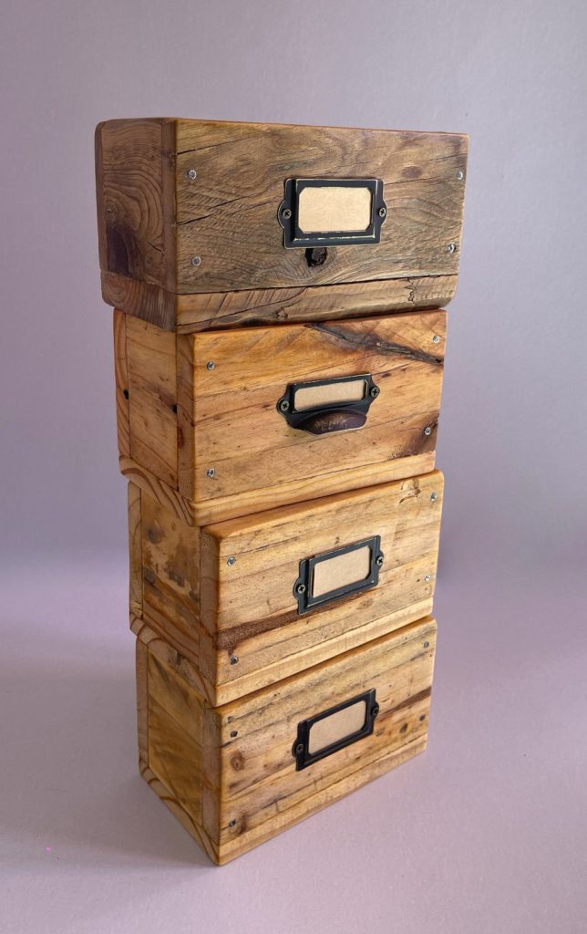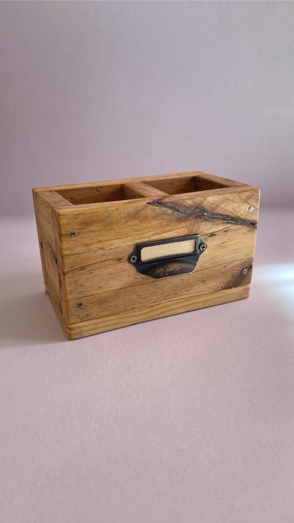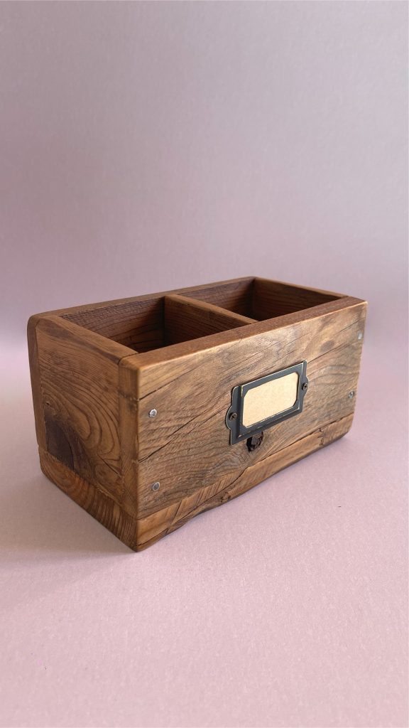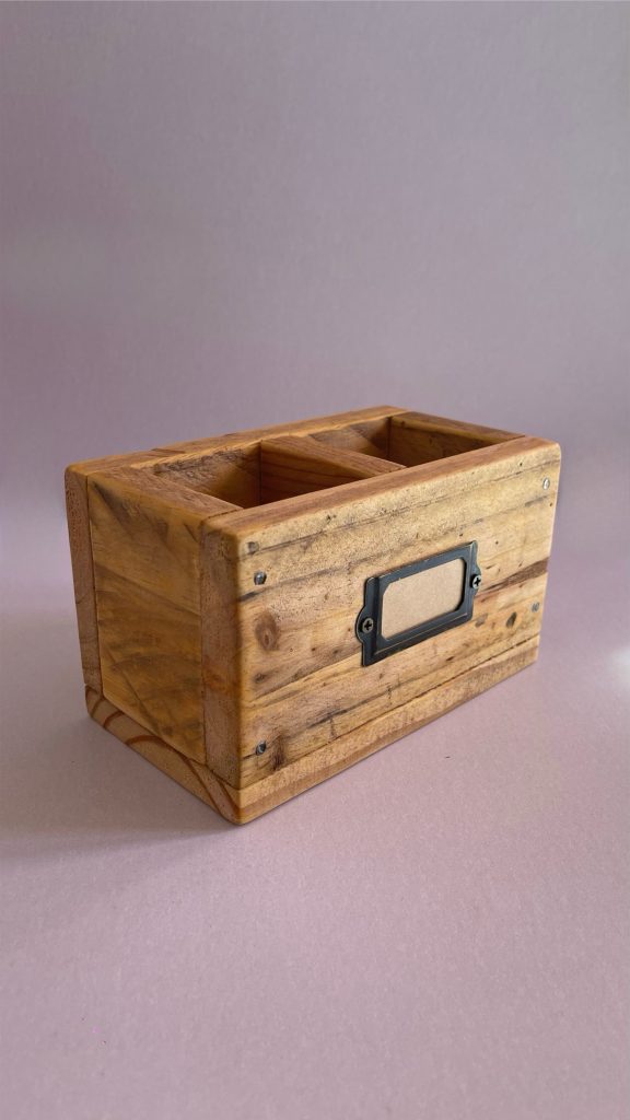 Organizador de madera recuperada. 17 x 10 x 10 cm.